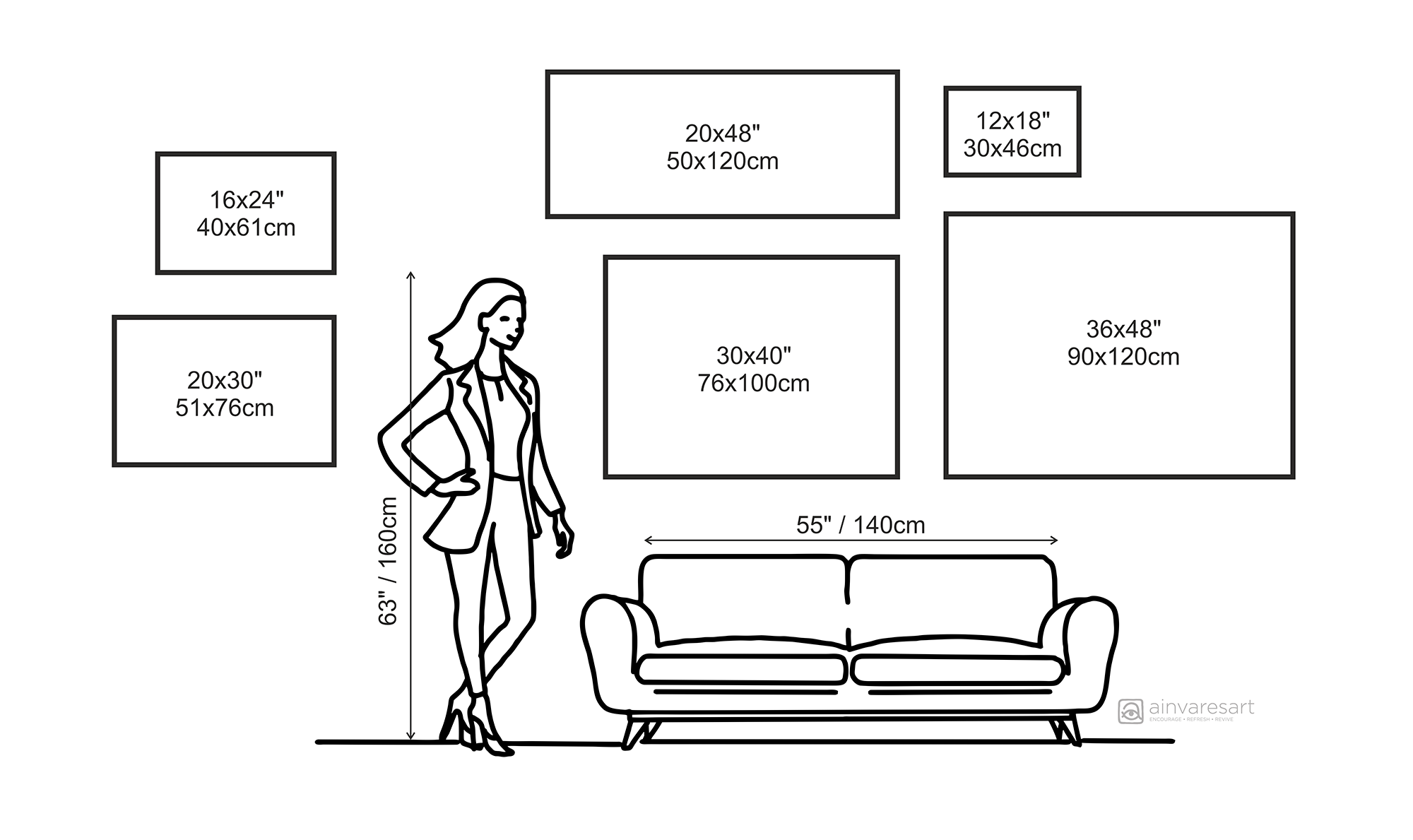For example, the height from floor to ceiling or the width of the sofa in the photo.
